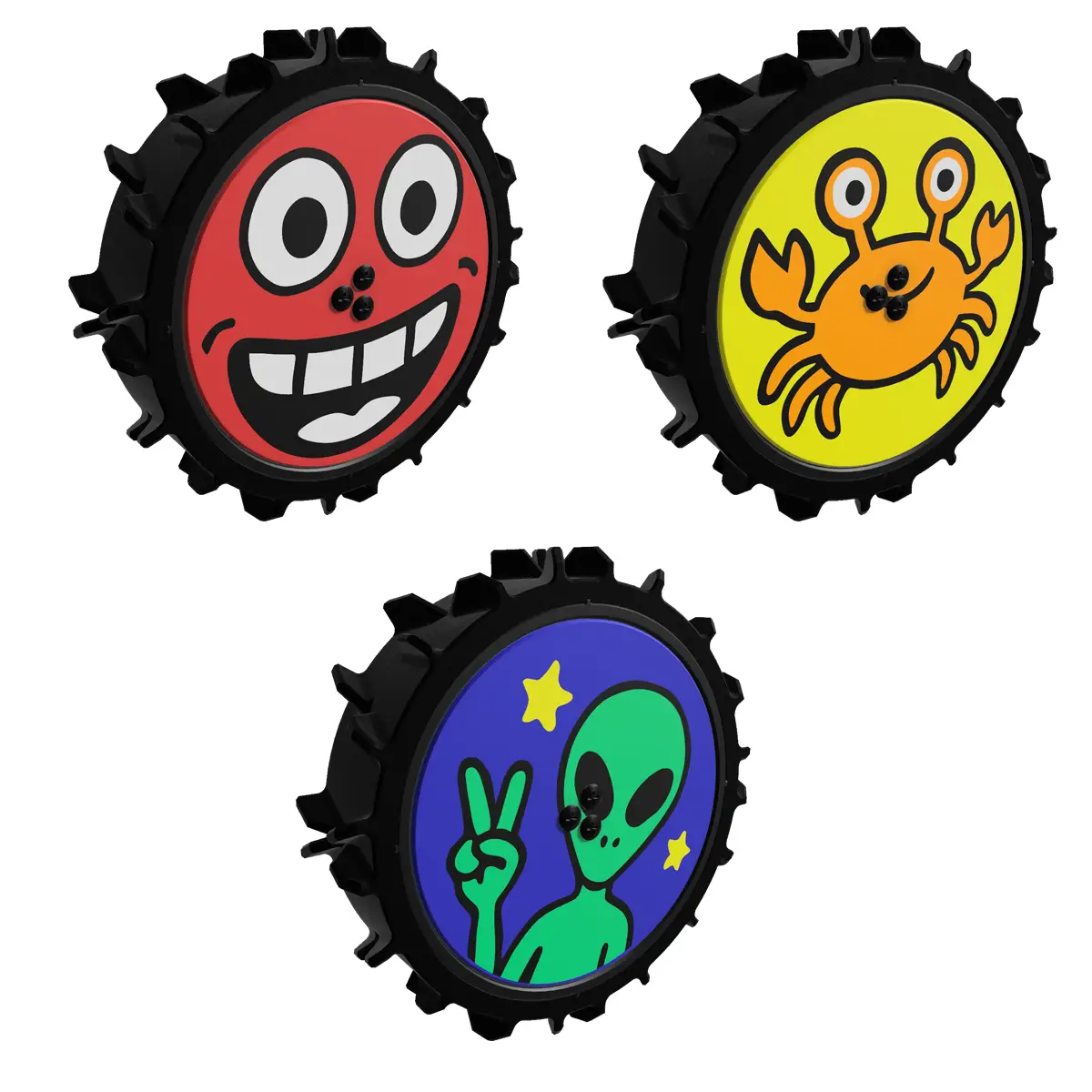 FunnyGrip Rad-Set passend für Bosch Indego Mähroboter Mach deinen Mähroboter zum Hingucker! Unser 2er-Set enthält zwei hochwertige Antriebsräder mit witzigen, mehrfarbigen Radkappen sowie neue Schrauben für die einfache Montage.