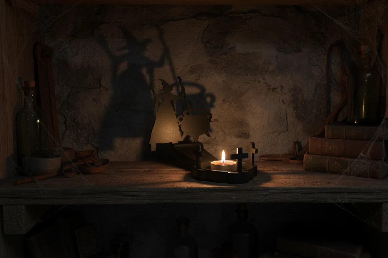 Startseite » Deko für jeden Anlass » Halloween Deko » Teelichthalter Halloween – Hexe, Kürbis & Co. aus recyceltem 3D-Druck